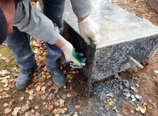 Затем мы аккуратно сняли само надгробье с постамента, после чего смогли свободно работать на участке.