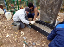 Пока раствор схватывался, мы обработали памятник, полностью подготовив его к монтажу.